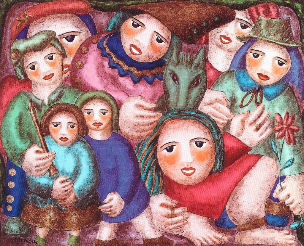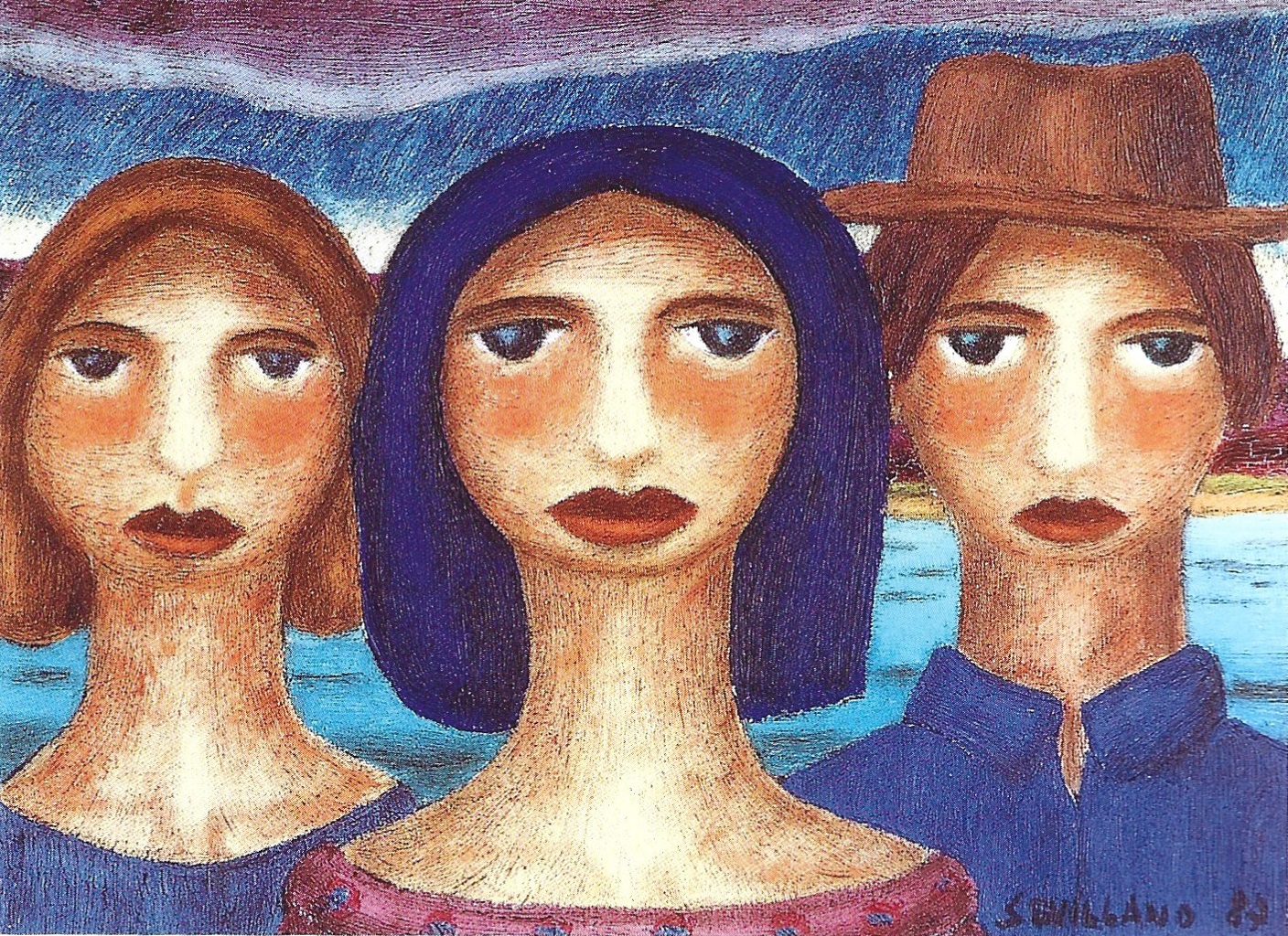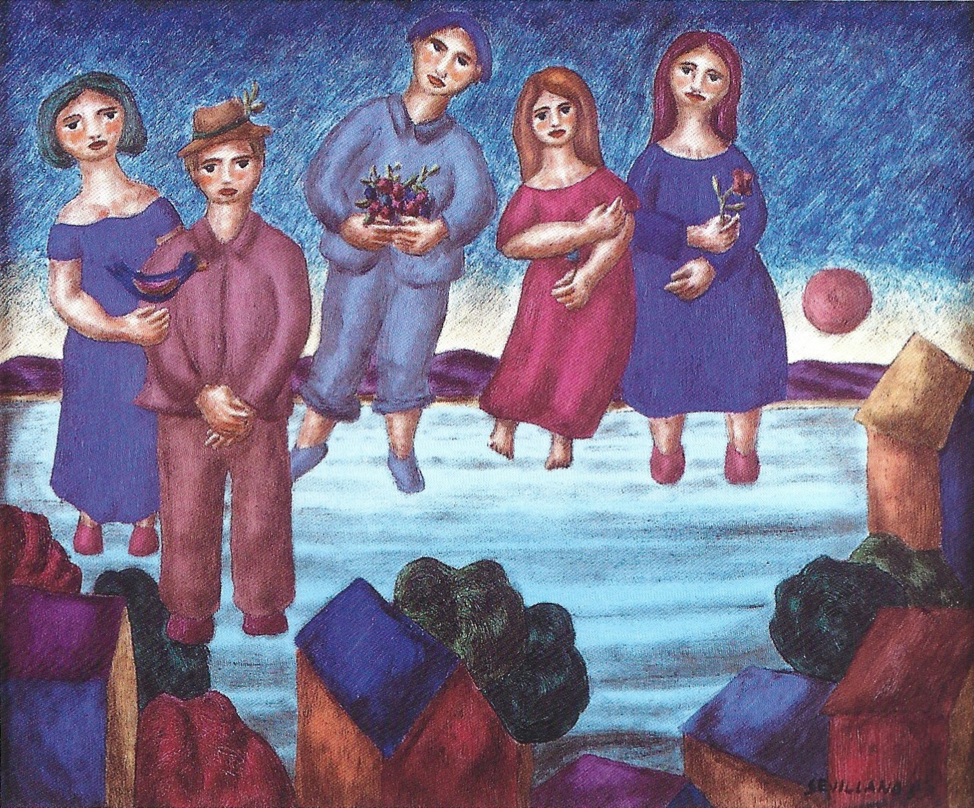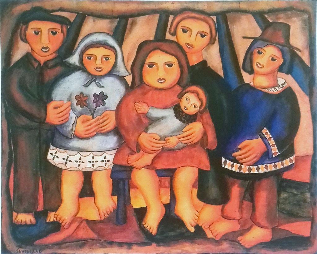 En una exposición realizada en 1964 aparece por primera vez la figura humana en la obra de Sevillano, para así ocupar el protagonismo de sus creaciones de ahora en adelante: A veces solas, en parejas o multitud, portando objetos como aves y flores. Con amables sonrisas y un halo de ingenuidad sus personajes danzan, posan y celebran; en labores cotidianas, tradiciones y festividades populares o escenas de emigración. En una paleta de tonos ocres, rojos y azules.