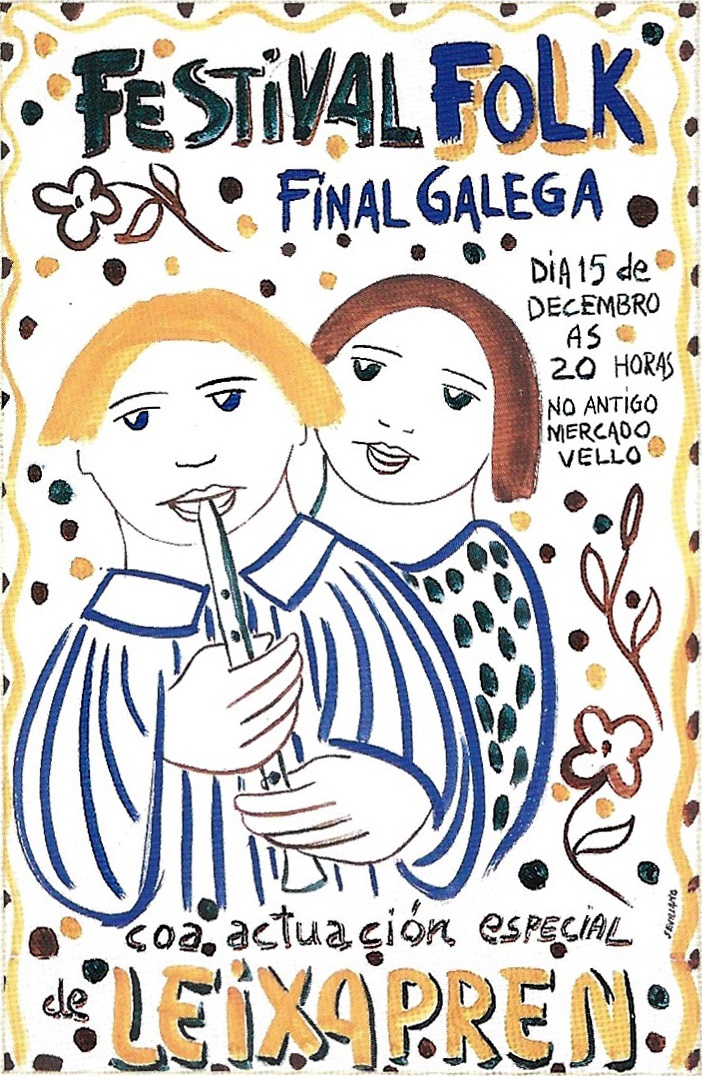 Afiches publicitarios diseñados por Sevillano para festivales de música Folk