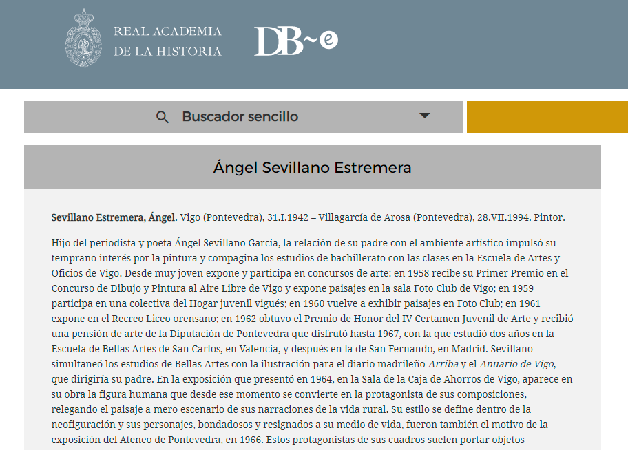 Sevillano simultaneó los estudios de Bellas Artes con exposiciones, y la ilustración para el diario madrileño Arriba y la revista Anuario de Vigo, trabajo el cual continuo realizando hasta bien entrados los años setenta.